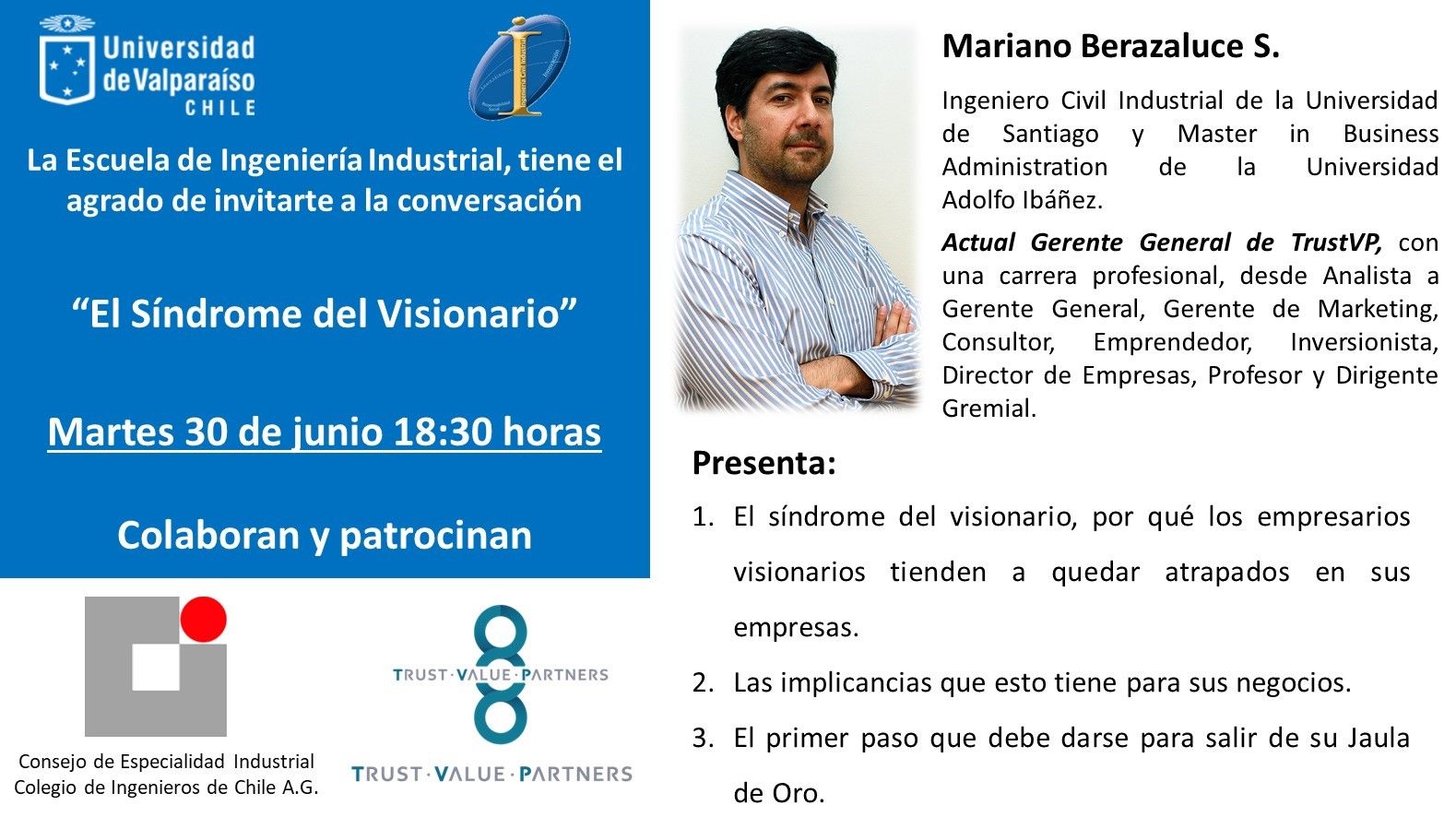 Conversatorio abierto a la comunidad, con el Ing. Civil Industrial Mariano Berazaluce, quien en esta oportunidad nos compartirá su experiencia en la participación y acompañamiento de empresas, para lograr que sus gestores no queden atrapadas en ellas.